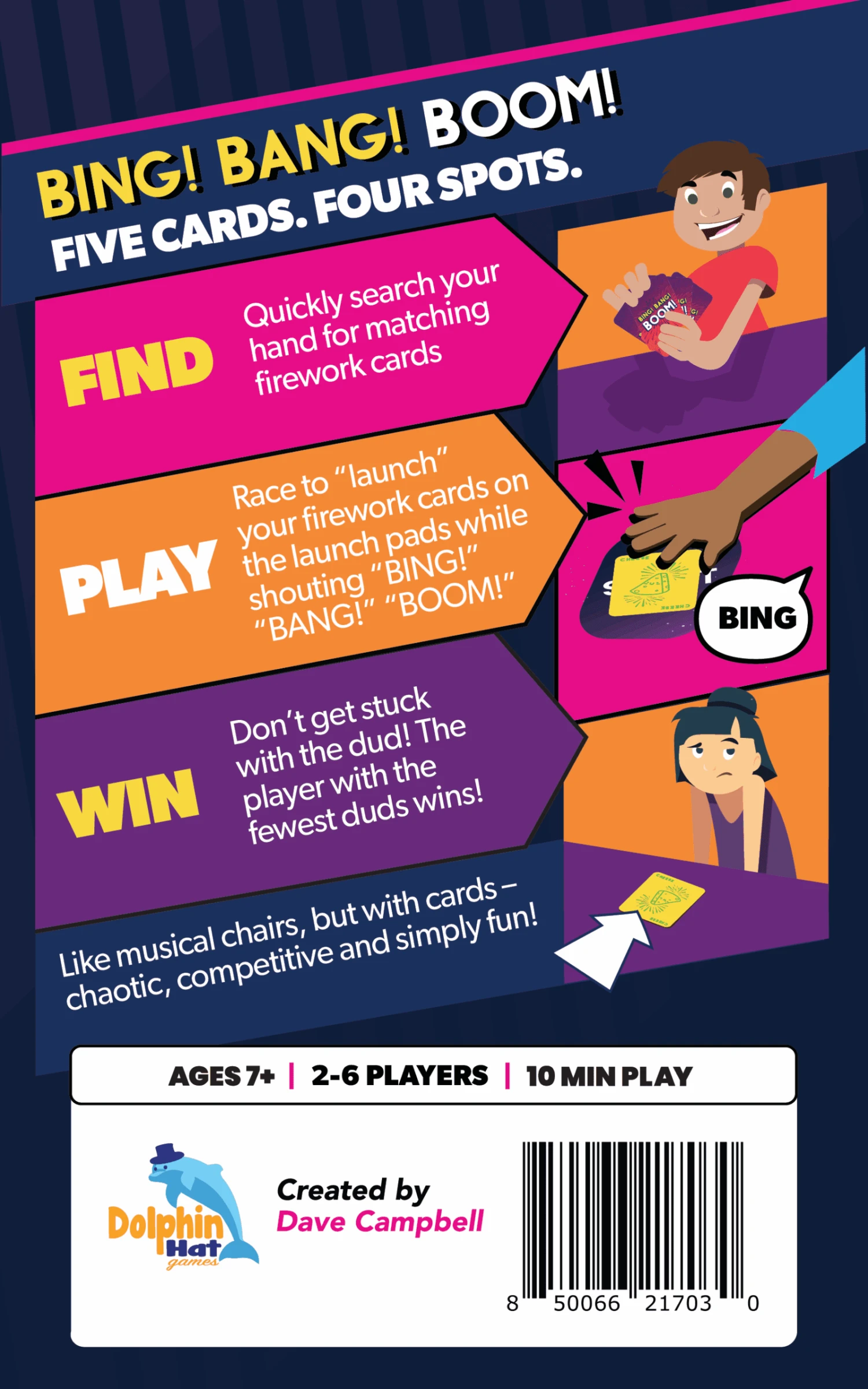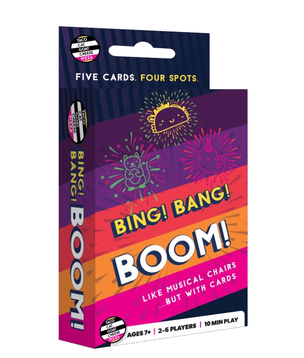 Get ready for firework fun with Bing Bang Boom, where speed and reflexes are your best friends. With four spots and five cards, your goal is to ditch your cards before they explode in your hand.