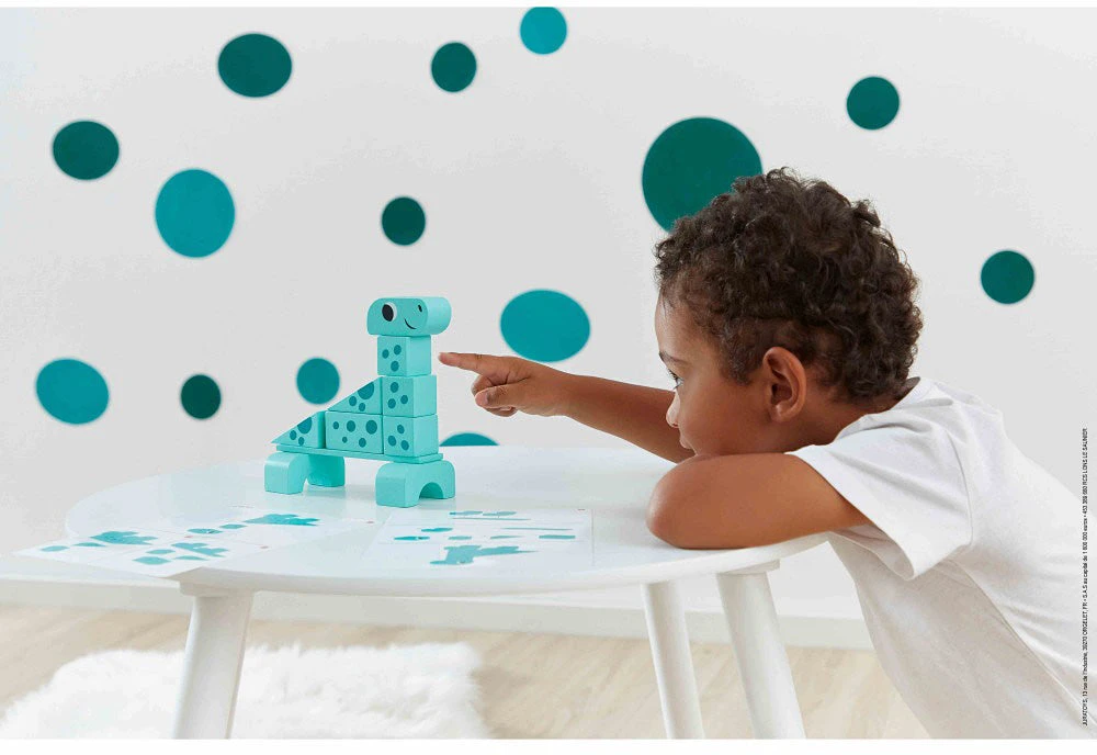 When it comes to dinosaur building sets, these blocks are tricera-top of the list for toddlers! This 31-piece wooden game is ideal for future engineers. Kids develop logic and dexterity skills as they build 3 dinosaurs from wooden shapes: a 10-piece triceratops, a 10-piece diplodocus and an 11-piece spinosaurus, each with big round eyes and soothing colors. Instruction cards provide guidance, or set them loose for open-ended construction play! All the parts are compatible with one another and are made from FSC wood.