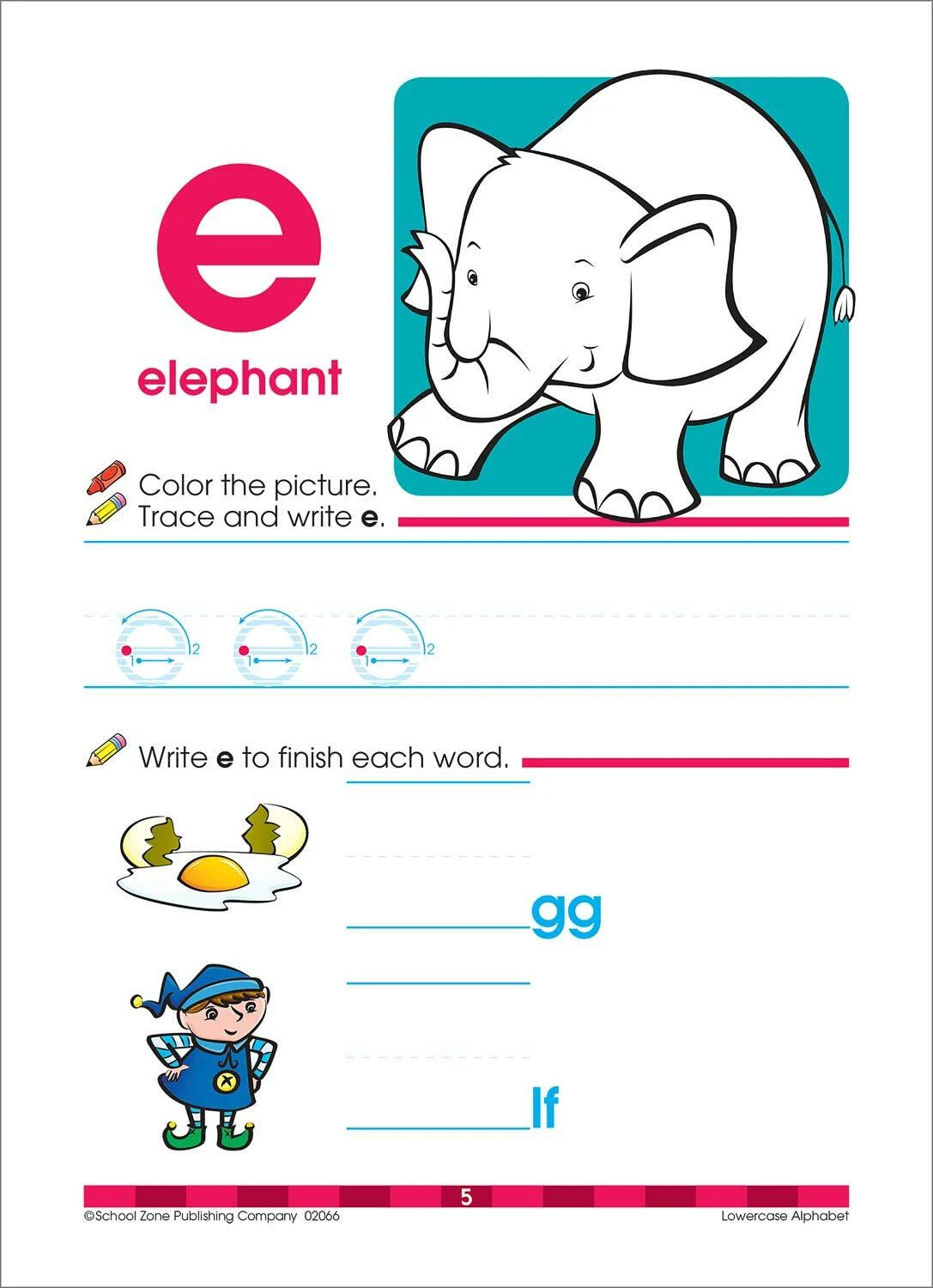 Practice “little” letters one at a time. This Lowercase Alphabet workbook from the Get Ready! series will help your child practice tracing and writing lowercase letters, which is an essential first step in learning to read. Plenty of bright-colored critters make it more fun! Plus, the illustrations will encourage your child to pronounce object names. Finish-the-word exercises help with beginning, middle, and ending sounds.