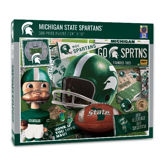Spend a relaxing day putting together a puzzle and getting a fun glimpse back in time You The Fan® Michigan State Spartans Retro Series 500-Piece Puzzle.
