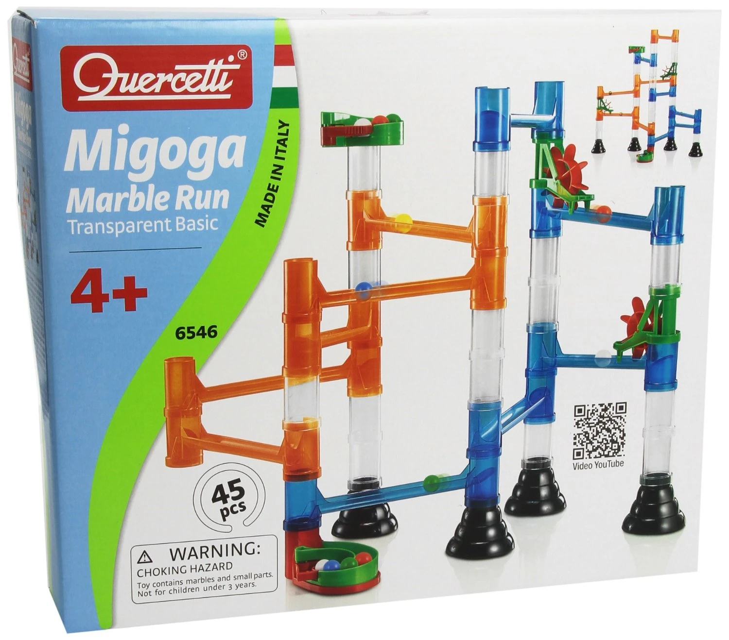 - 45 Piece Set includes marbles and transparent tubes.