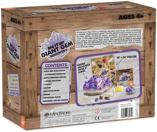 - INCLUDES: 1 Giant Gem, 2 chiseling tools, instructions and a Gemstone Poster. (For ages 4 and up)