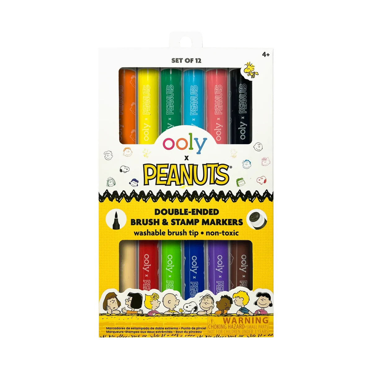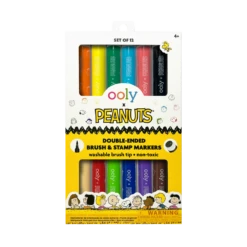 Get creative using the OOLY x Peanuts Double-Ended Stamp Markers with Snoopy, Charlie Brown, and the whole Peanuts gang. Each marker features a brush tip for vibrant coloring and a stamp end that stamps your favorite Peanuts characters’ faces onto paper. With a total of 6 double-ended markers, featuring 12 brush markers and 12 stamp markers, these markers bring double the fun to your artistic adventures. Whether you’re drawing a baseball game or coloring Snoopy’s next flight as the World War I Flying Ace, these markers are perfect for adding Peanuts fun to every project.