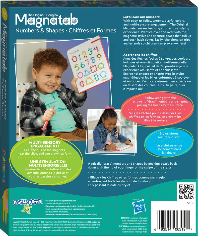 Let’s draw! The Original Magnatab is easy for children to use, drawing whatever pictures come to mind or practicing letters, numbers, and shapes—there are so many playful, creative, and educational opportunities! Kids can display and view their drawings at night, or play under the tent of their bed covers! Children can draw over and over with the magnetic stylus and secured beads that pull up and push back down. Easily take along on trips and errands so children can play anywhere!
