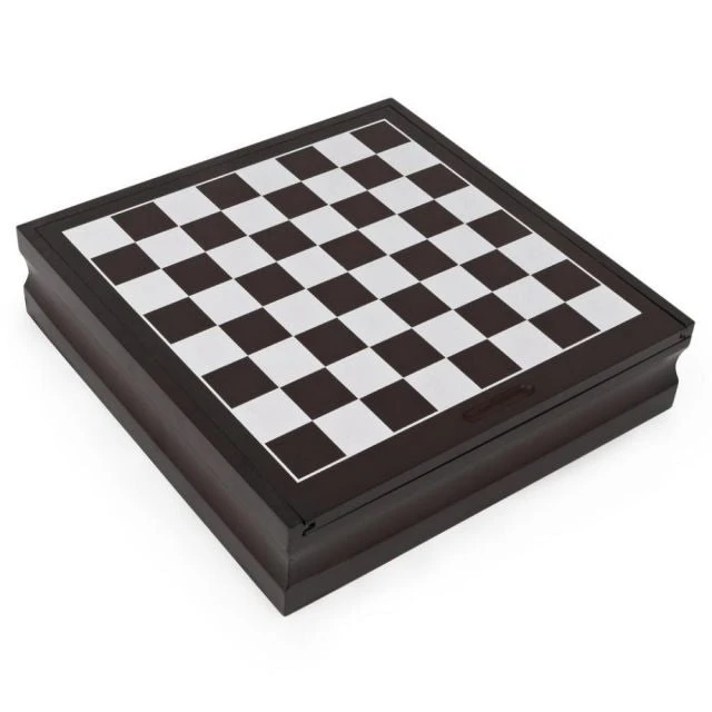 ELEGANT DESIGN AT A GREAT PRICE: Distinctive wood cabinet stores the double-sided boards and all the parts you`ll need to play these beloved family classics.