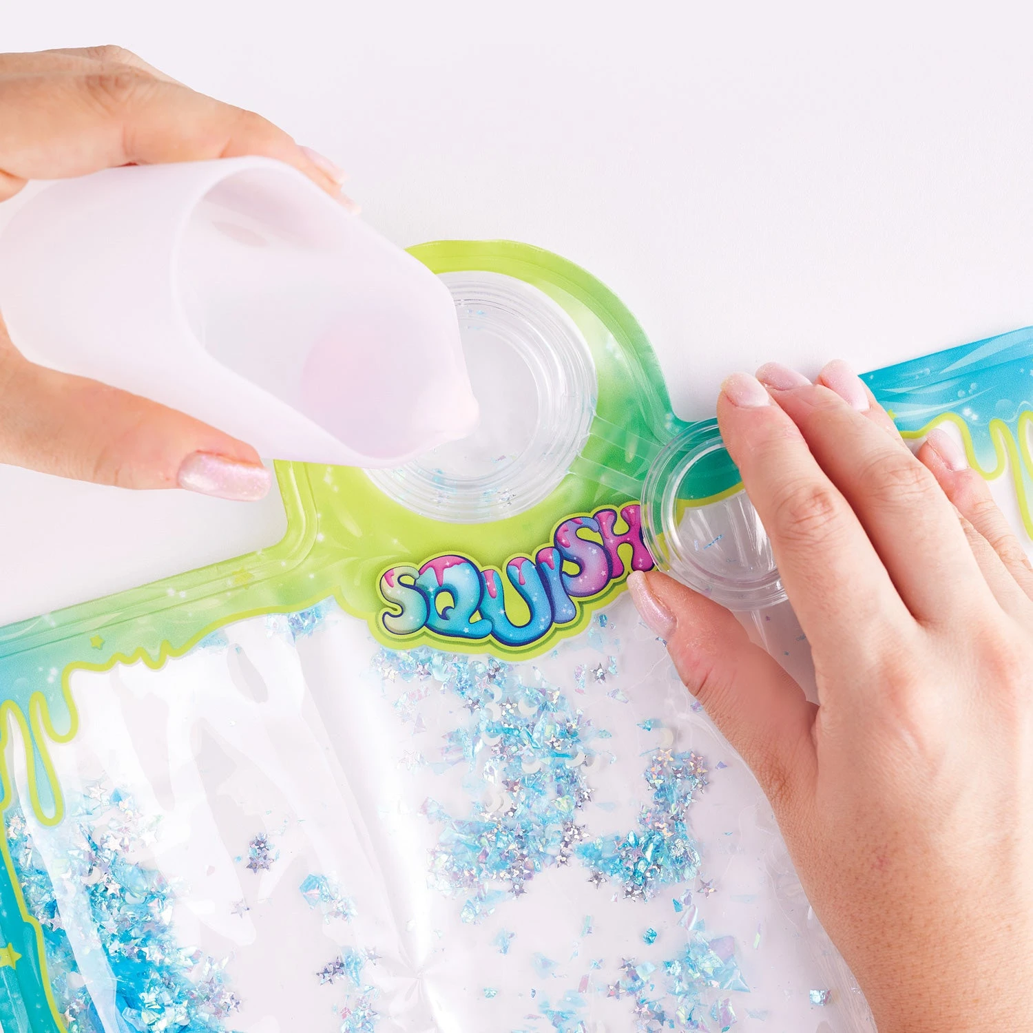 Sensory toys are more fun when kids make their own! This 12″ x 11.4″ DIY fidget bag comes with everything kids need to create a super squishy sensory space adventure. Add magic color capsules, sparkle confetti, colorful foam beads, glow-in-the-dark confetti, alien, astronaut and rocket charms, glitter and more. Fill with water, watch the color capsules burst into slimy gel, and then let the glow-in-the-dark squishing exploration begin.
