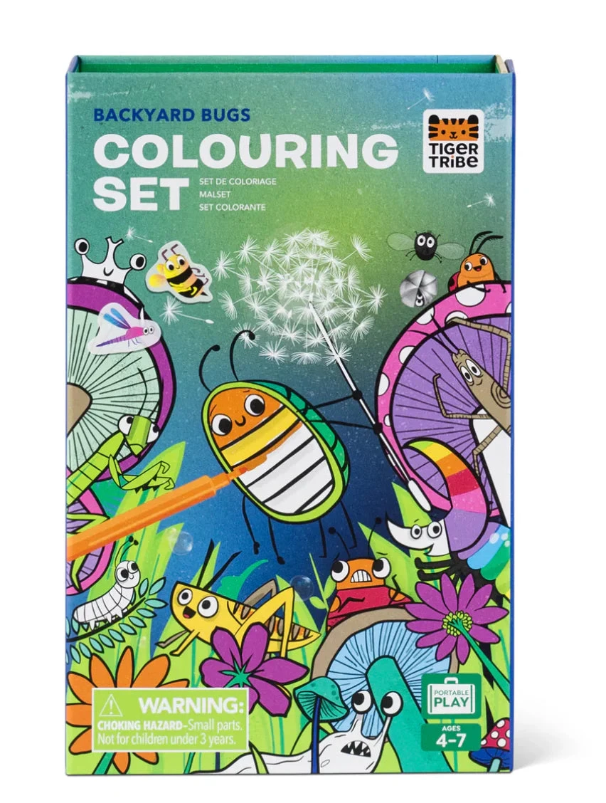 - Classic, all-in-one coloring set in quirky Backyard Bugs design
