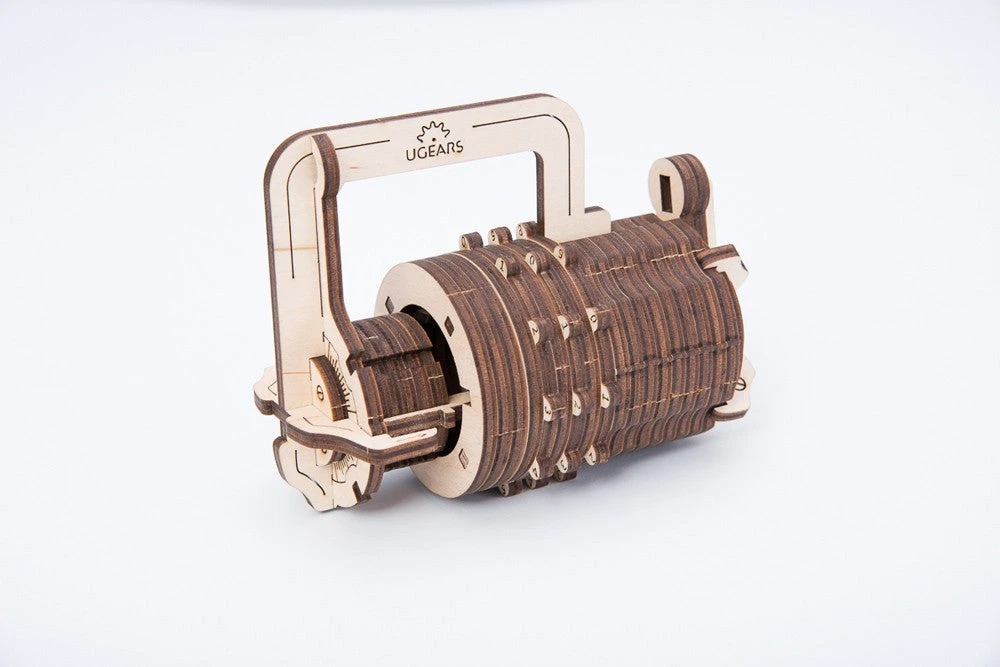 Inspired by “The Da Vinci Code”. We dived into the world of conspirology, secrets and cryptography while designing our new intriguing Cryptex model. The Combination Lock consists of two parts. It opens if you set the right 3-digit combination. You can hide the keys, small items and your own secrets inside. The Lock has a convenient “eyelet” to hang the lock on a bag. Try to create your own Da Vinci Code’s Cryptex with 1000 combinations of 3 digit code. Assemble UGEARS Lock and get the idea of modern combination lock principle.