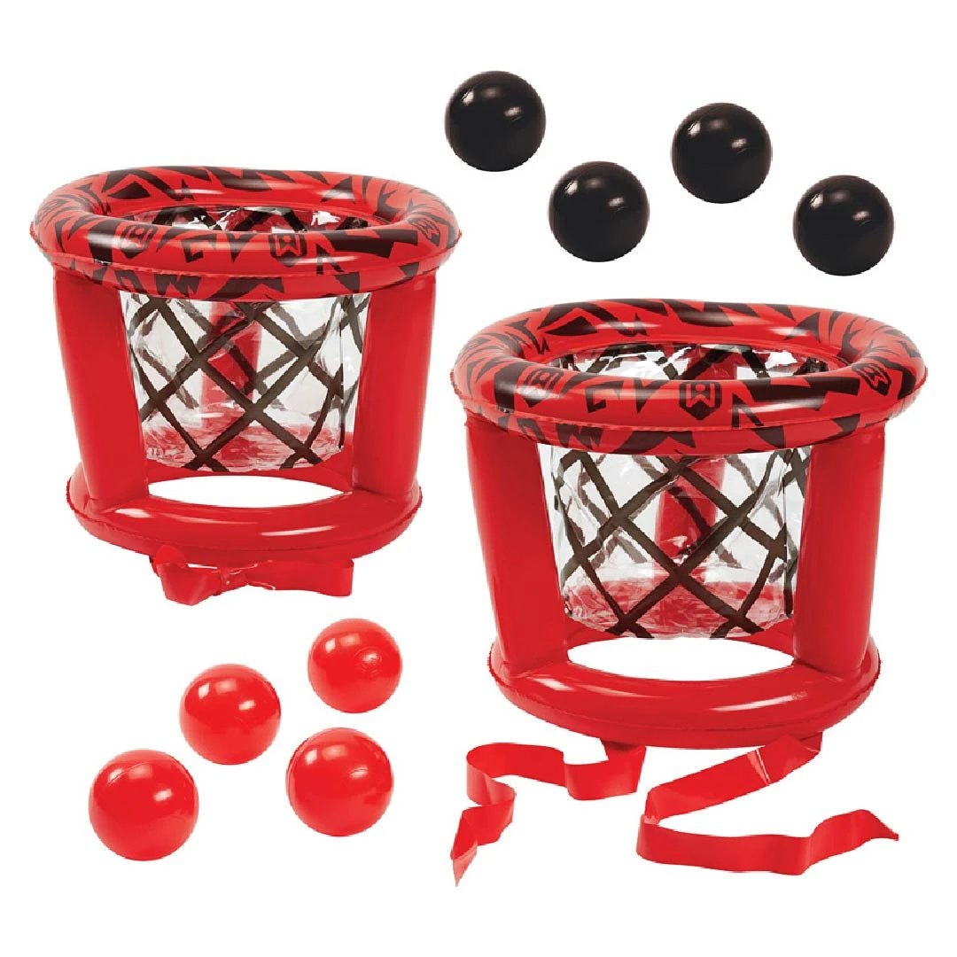 Do I look silly? I’m just using my head to win this fast moving, frivolous tossing game! For 2 teams of 2 players, indoors or out. Includes 2 inflatable baskets with straps and 8 balls. Just try not to laugh!